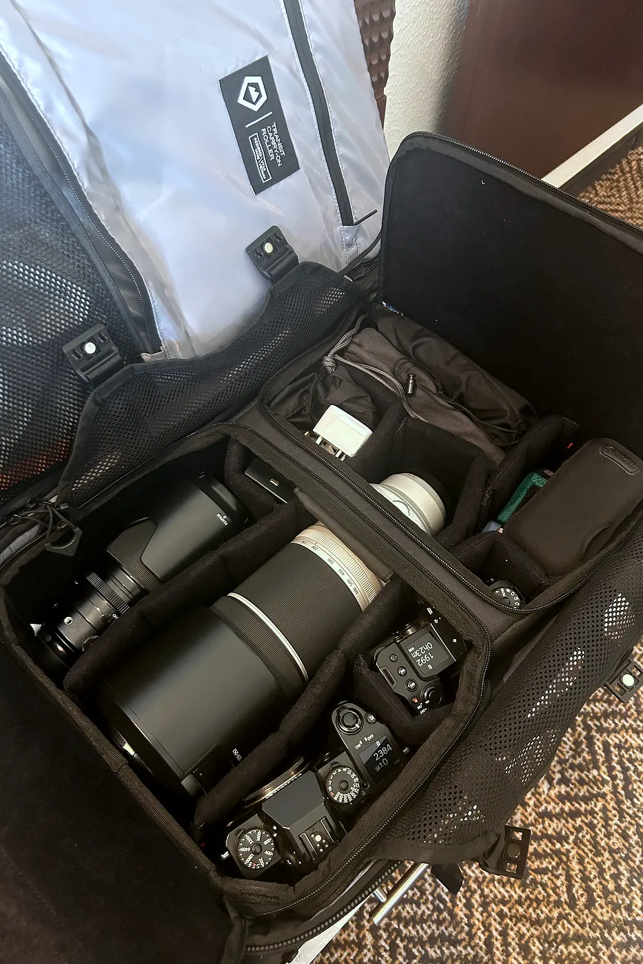 When I’m travelling I now use the Wandrd Transit Carry On Roller as my cabin bag for most of my gear. I also use a ThinkTank Airport Commuter for travelling and a Manfrotto RedBee-210 ‘in the field’.